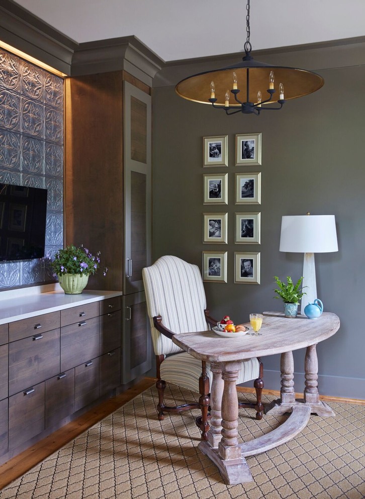 Lakeside Office Eclectic Home Office Birmingham Inspiration for a midsized eclectic freestanding desk medium tone wood floor study room remodel in Birmingham with green walls and no fireplace Houzz